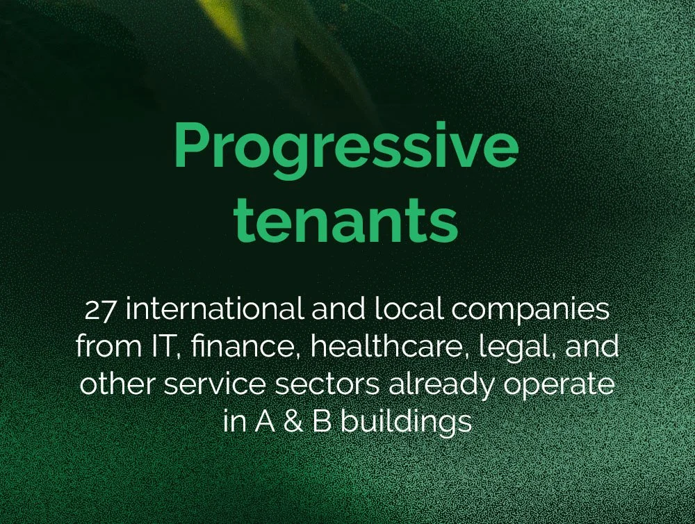 Our two current A-class office buildings are 100% leased, and now we’re developing two more – offering an additional 22 500 m² of leasable space for future-forward companies ready to join Latvia’s greenest business district.