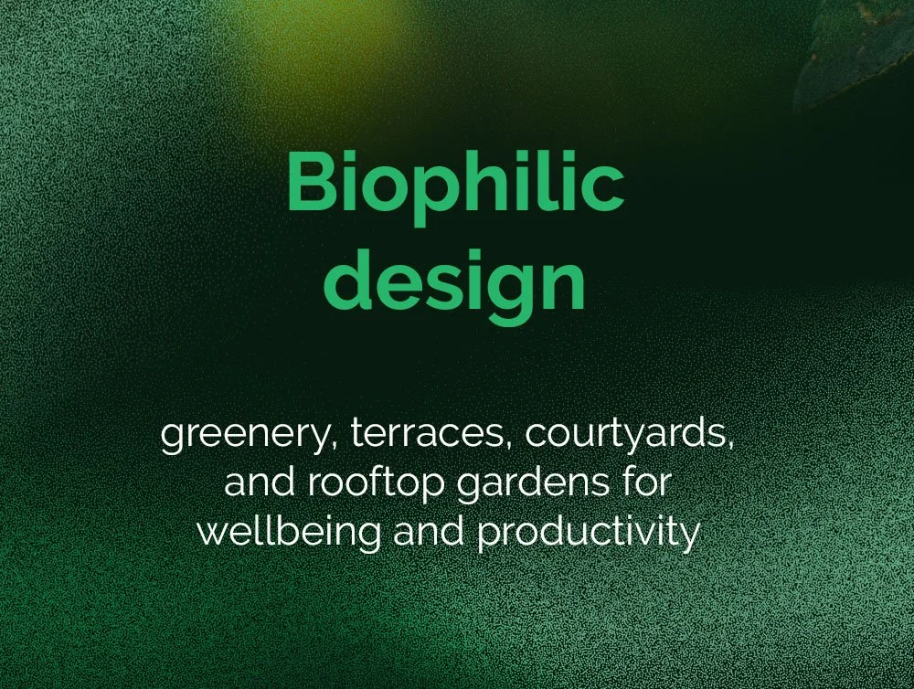 A strong connection to nature – lush green relaxation areas and rooftop gardens for peaceful breaks and creative conversations